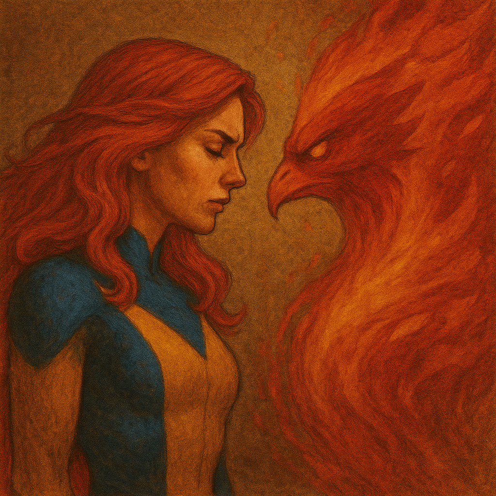 Jean Grey y el Fénix: Jean no lucha contra un monstruo ajeno, sino contra una fuerza ancestral y desbordante que vive dentro de ella. El Fénix es su poder psíquico, su deseo, su emoción… descontrolados. Cuando se libera sin conciencia, se vuelve fuego que quema. No puede negarlo sin negarse a sí misma. Solo atravesando el fuego, reconociendo y conteniendo esa intensidad, puede renacer con sabiduría. Como el ave mitológica, debe arder para renacer. Y eso también es Saturno en Aries: aprender a sostener el fuego sin quemarse.